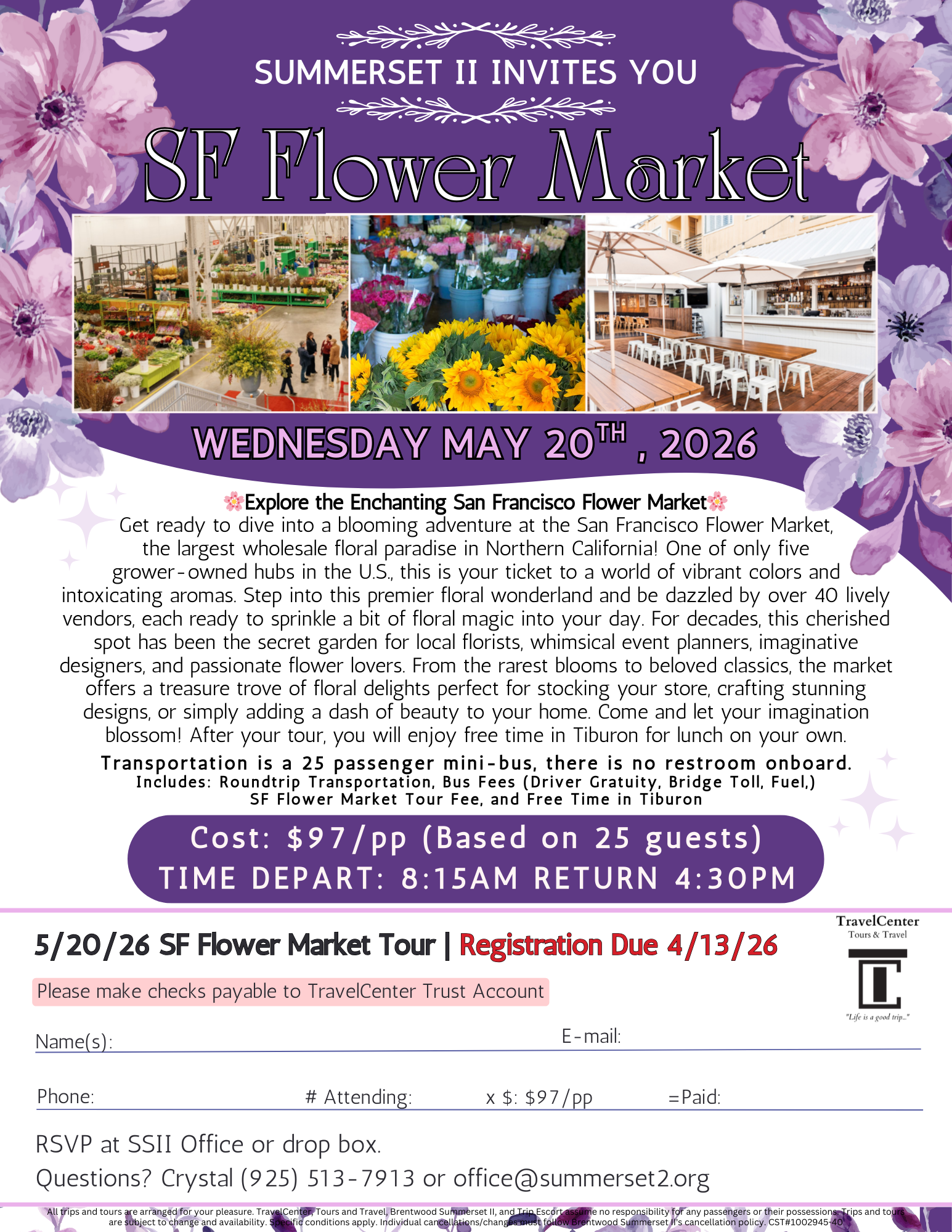 Brochures are available by the Clubhouse bulletin board